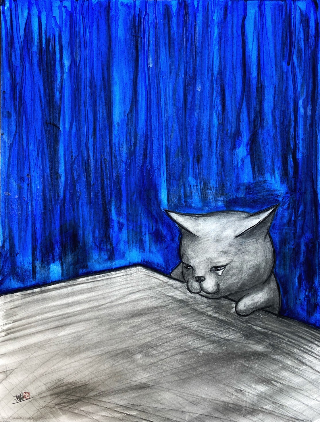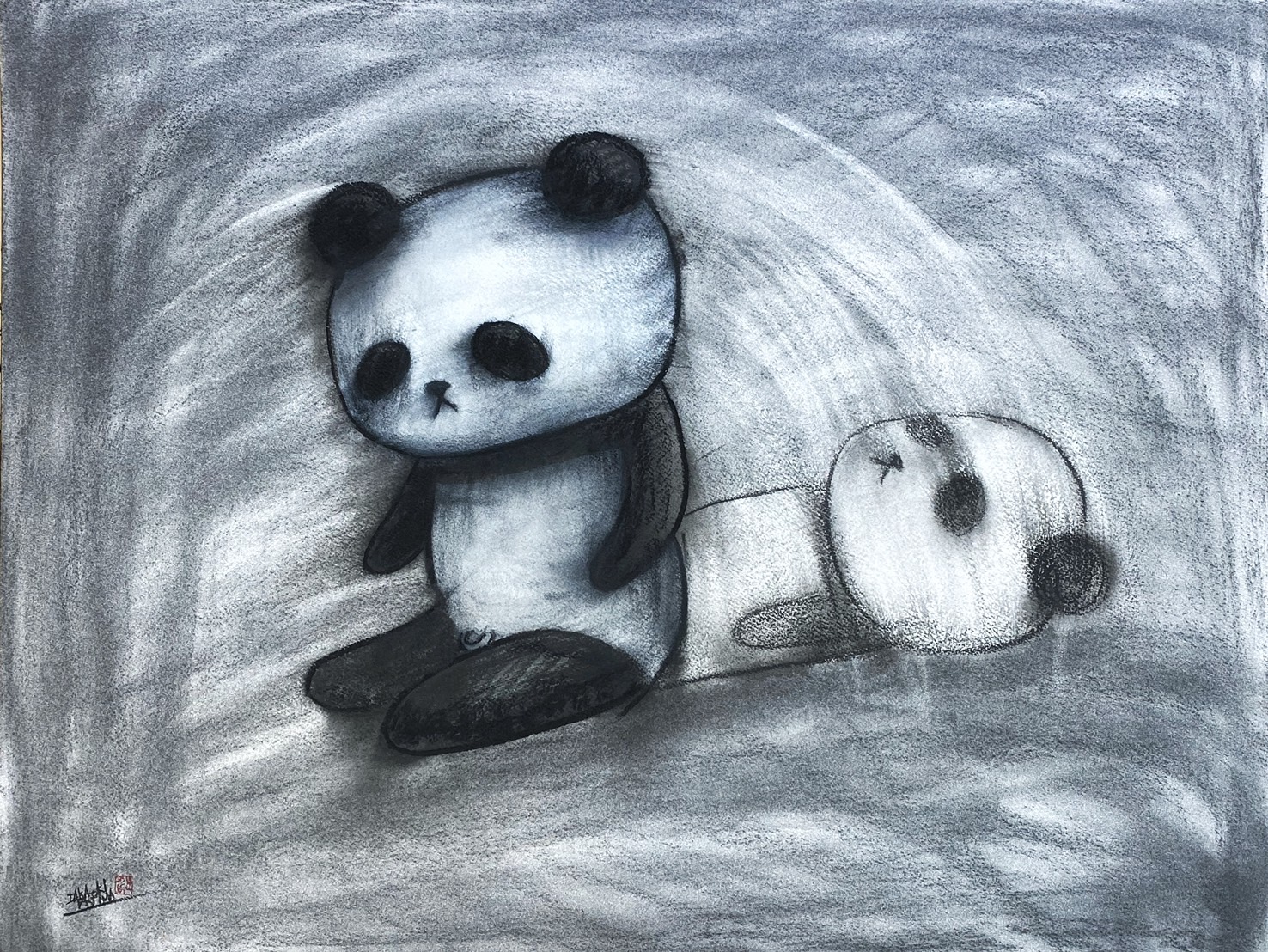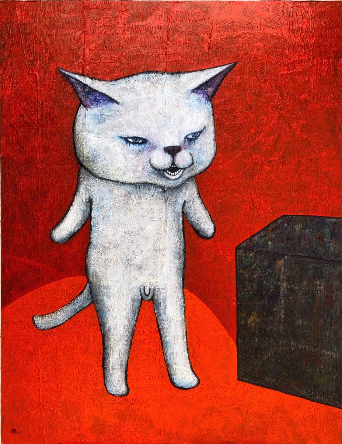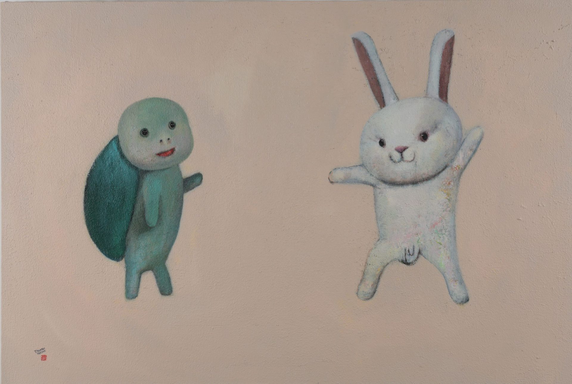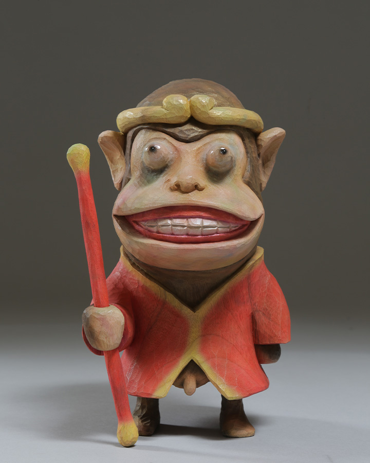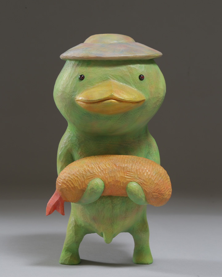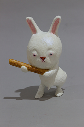 2頭身のキャラクターや《デッドボール》シリーズに見られるような独特の造形言語は、可笑しみと切なさを湛えつつ、観る者の想像力と感情を強く揺さぶる。