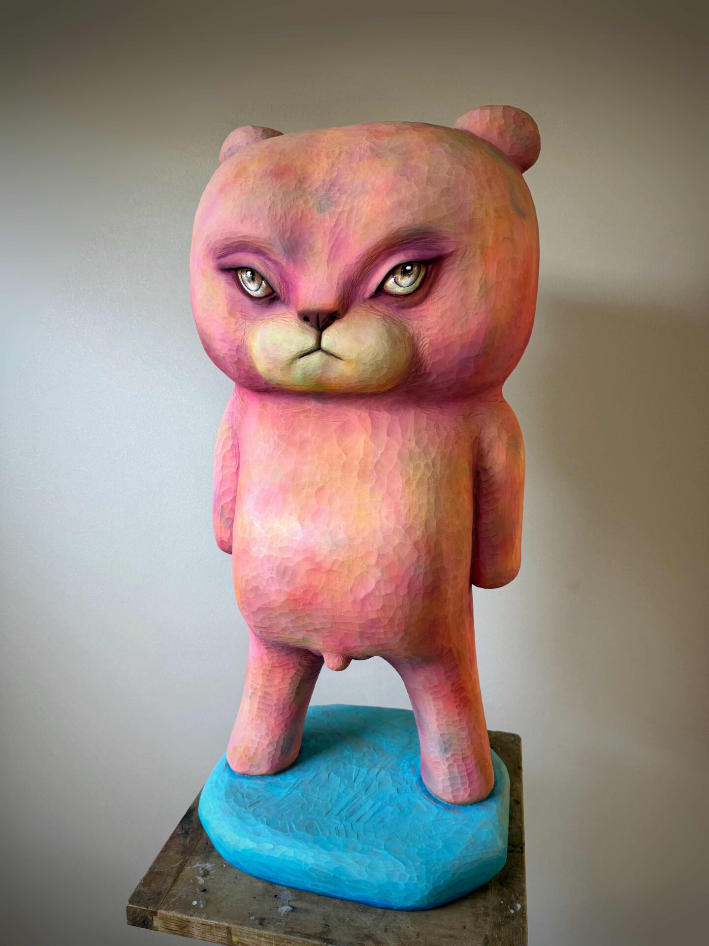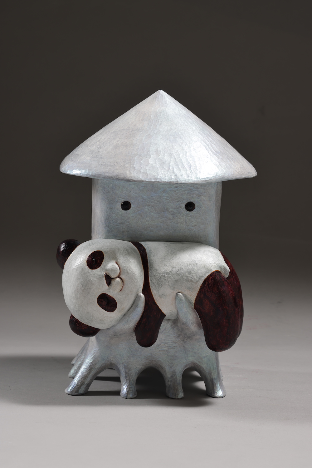 しかし彼の表現は、伝統の延長線にとどまらない。彫刻に加え、絵画、ドローイング、リトグラフ、そして陶芸といった多様なジャンルを縦横無尽に横断し、具象と抽象、笑いと哀しみ、静けさと暴力性を自在に往還する表現世界を構築している。
