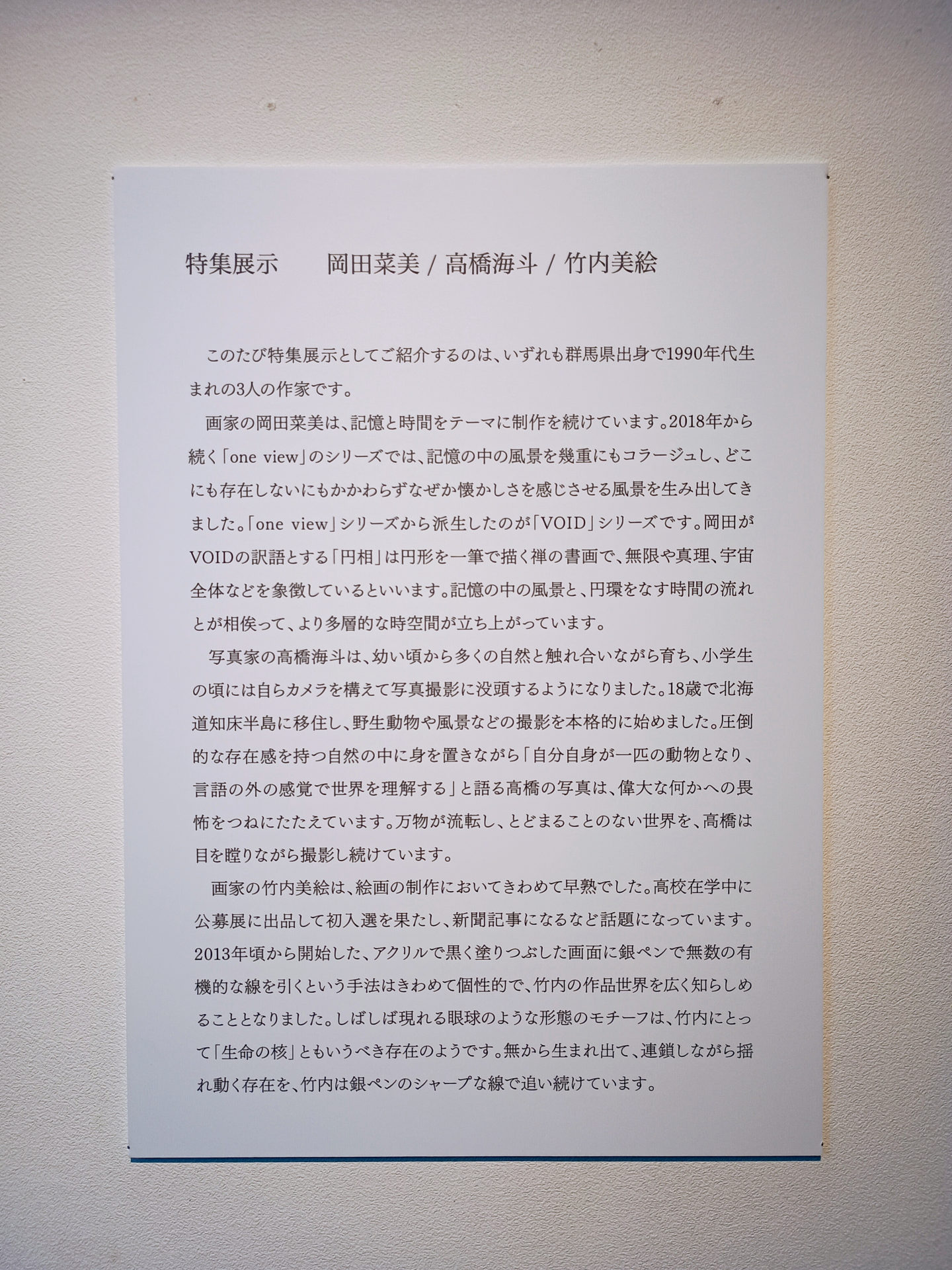 Additionally, Okada will take part in a gallery talk on Sunday, December 8, at 2:00 p.m. Advance registration is required for the “Nami Okada Gallery Talk.” If you would like to attend, please call the Takasaki Museum of Art at 027-324-6125, starting at 10:00 a.m. on Monday, November 11.