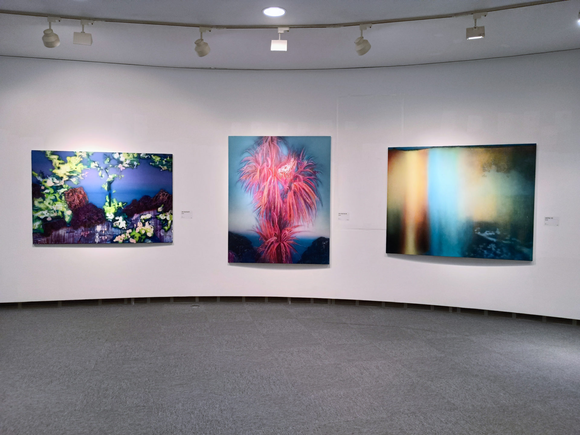 The landscapes depicted in these works lack tangible form. Instead, they emerge gradually, layered from fragments drawn from my memory.