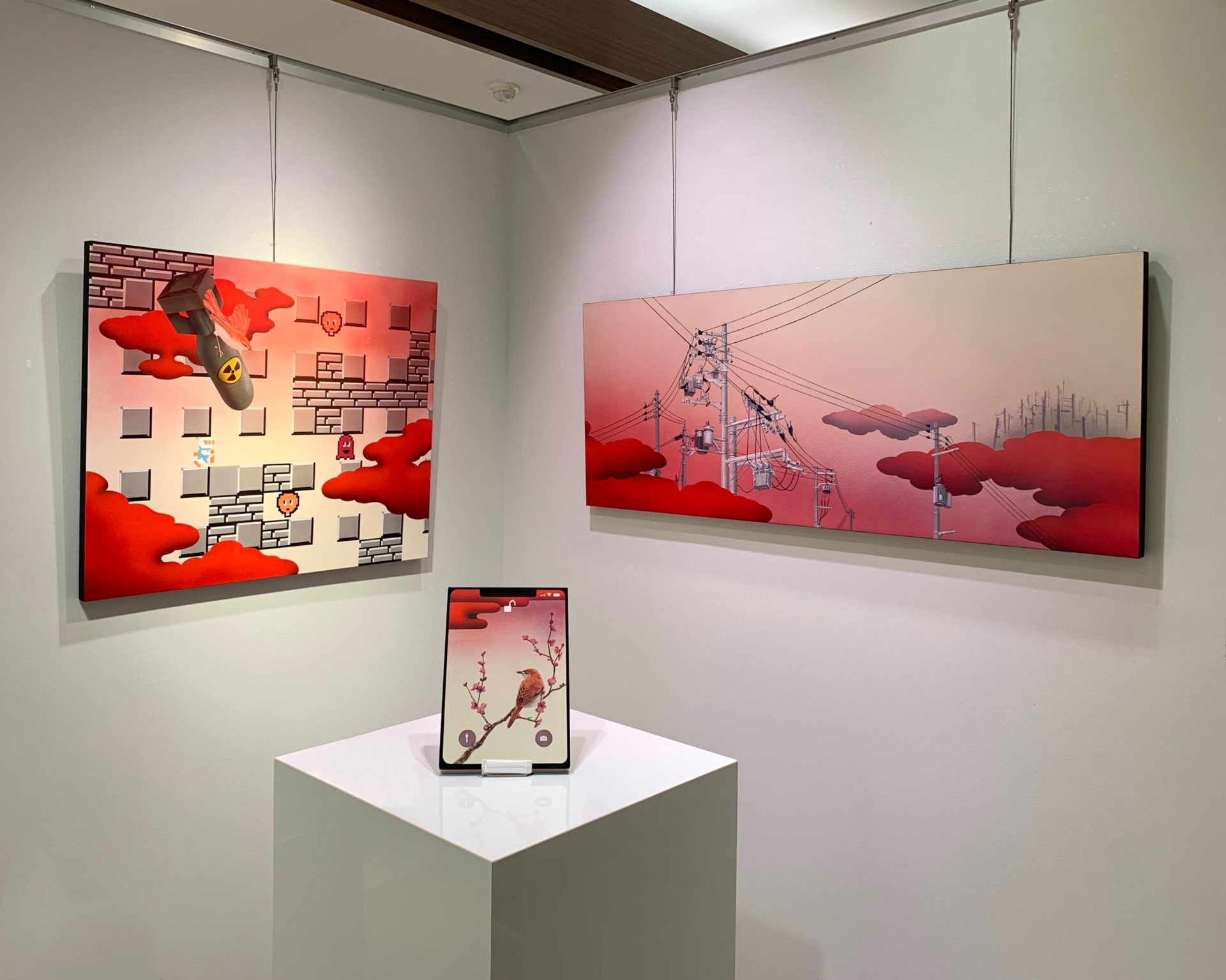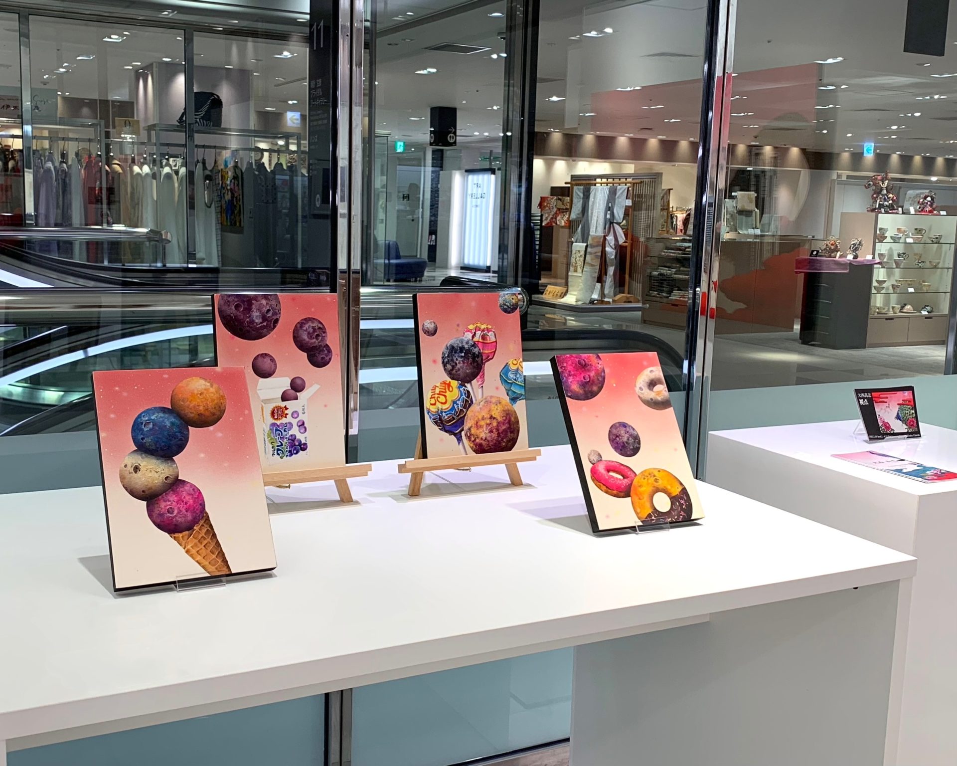 His works reflect themes derived from the diverse phenomena of contemporary life, including childhood dreams of becoming an astronaut, planets, and beloved characters from games he enjoyed.