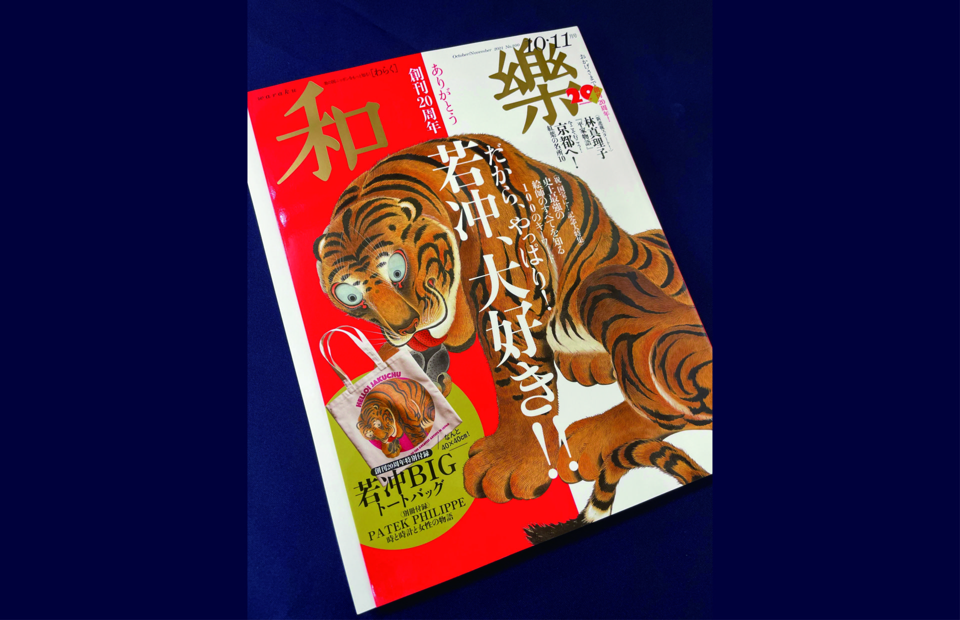 The October/November issue of “Waraku” magazine special feature about Ito Jakuchu, features Osamu Watanabe’s “Tiger and Yatsuhashi” now on sale.