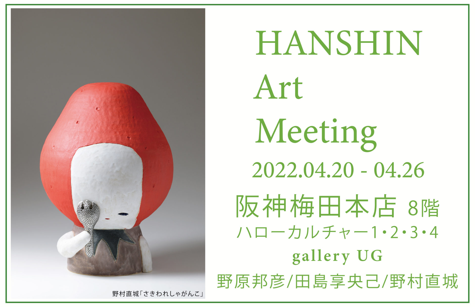 この度、gallery UGは4月20日から4月26日まで、阪神梅田本店 8階 ハローカルチャー1・2・3・4で行われる「HANSHIN Art Meeting」に出展いたします。