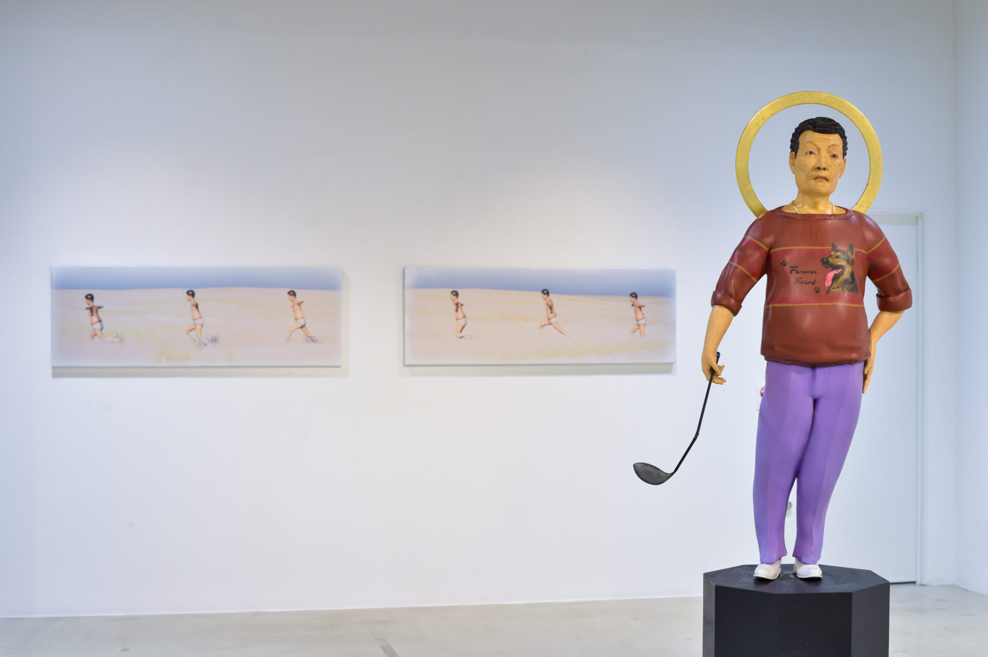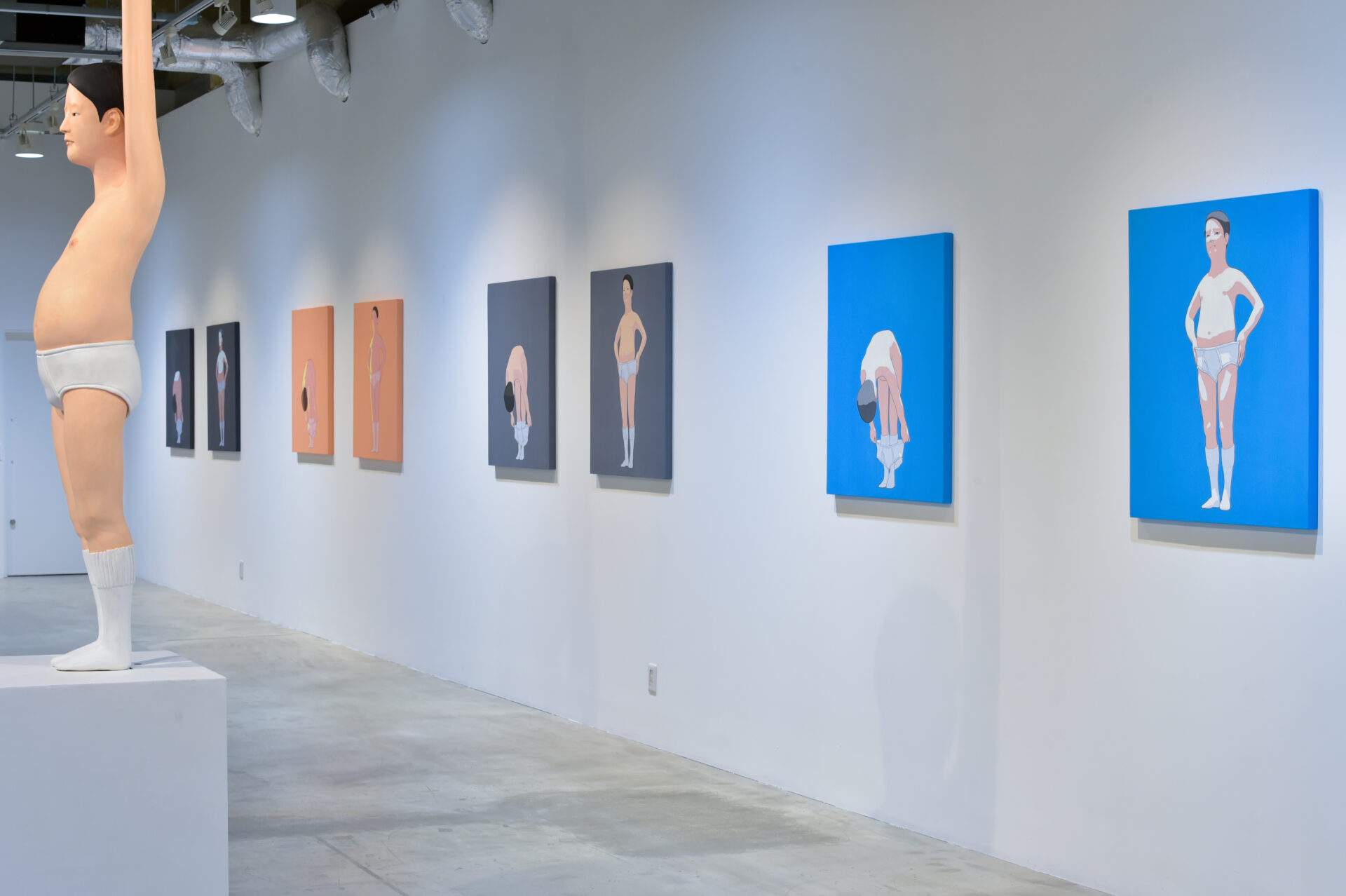 近年制作し続けている“清潔な人”シリーズは、中年男性が世間の目という緊張感から解放され、自宅でリラックスした瞬間の象徴的な姿として作られています。