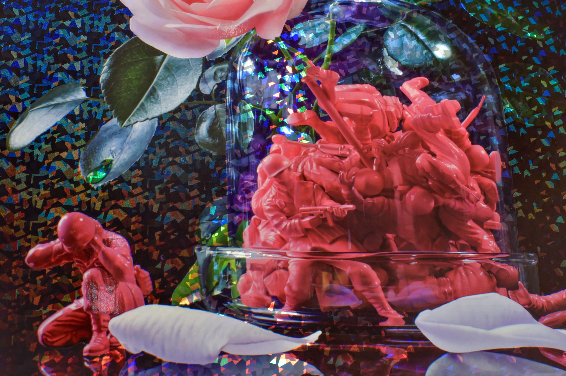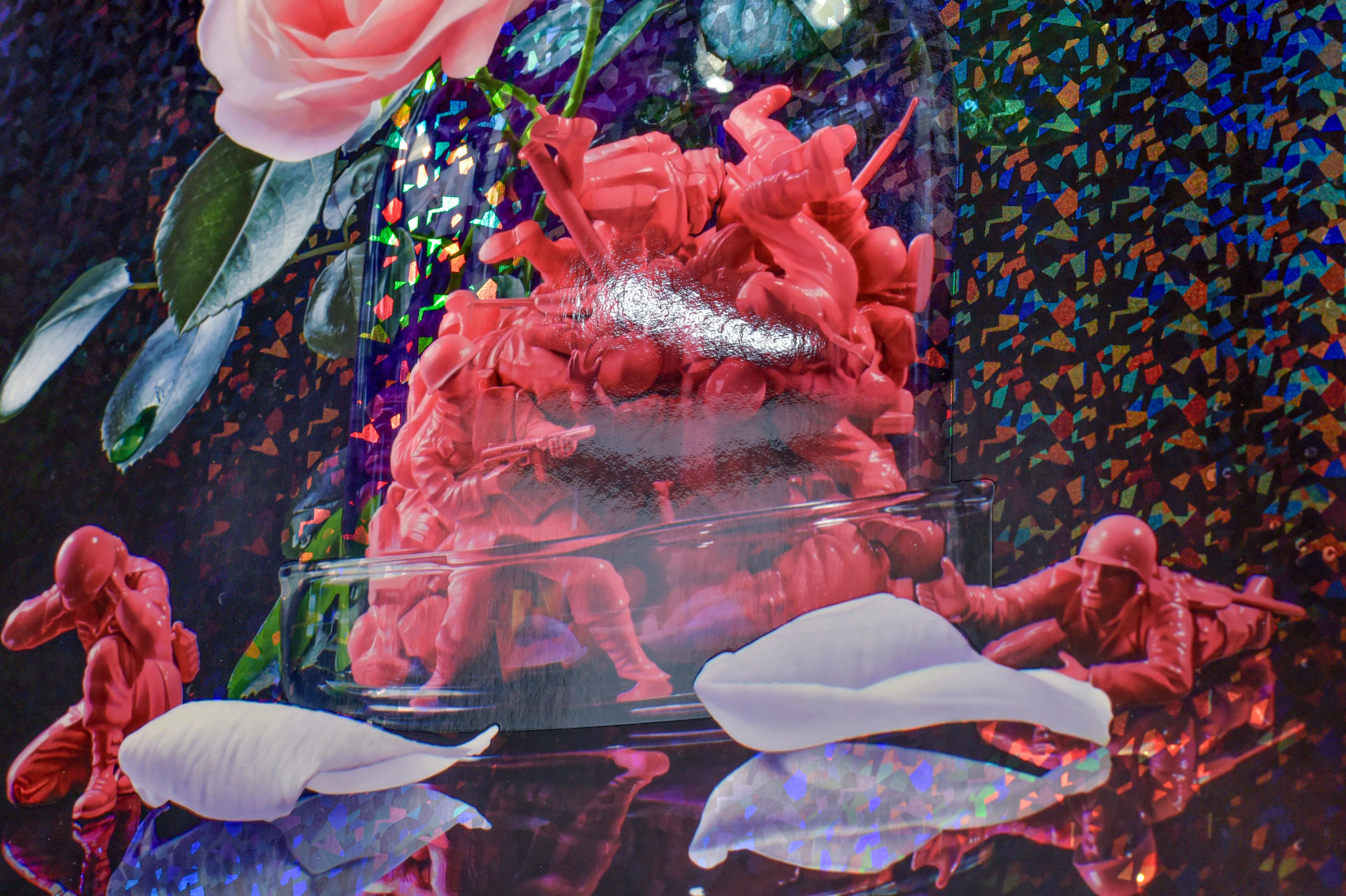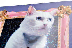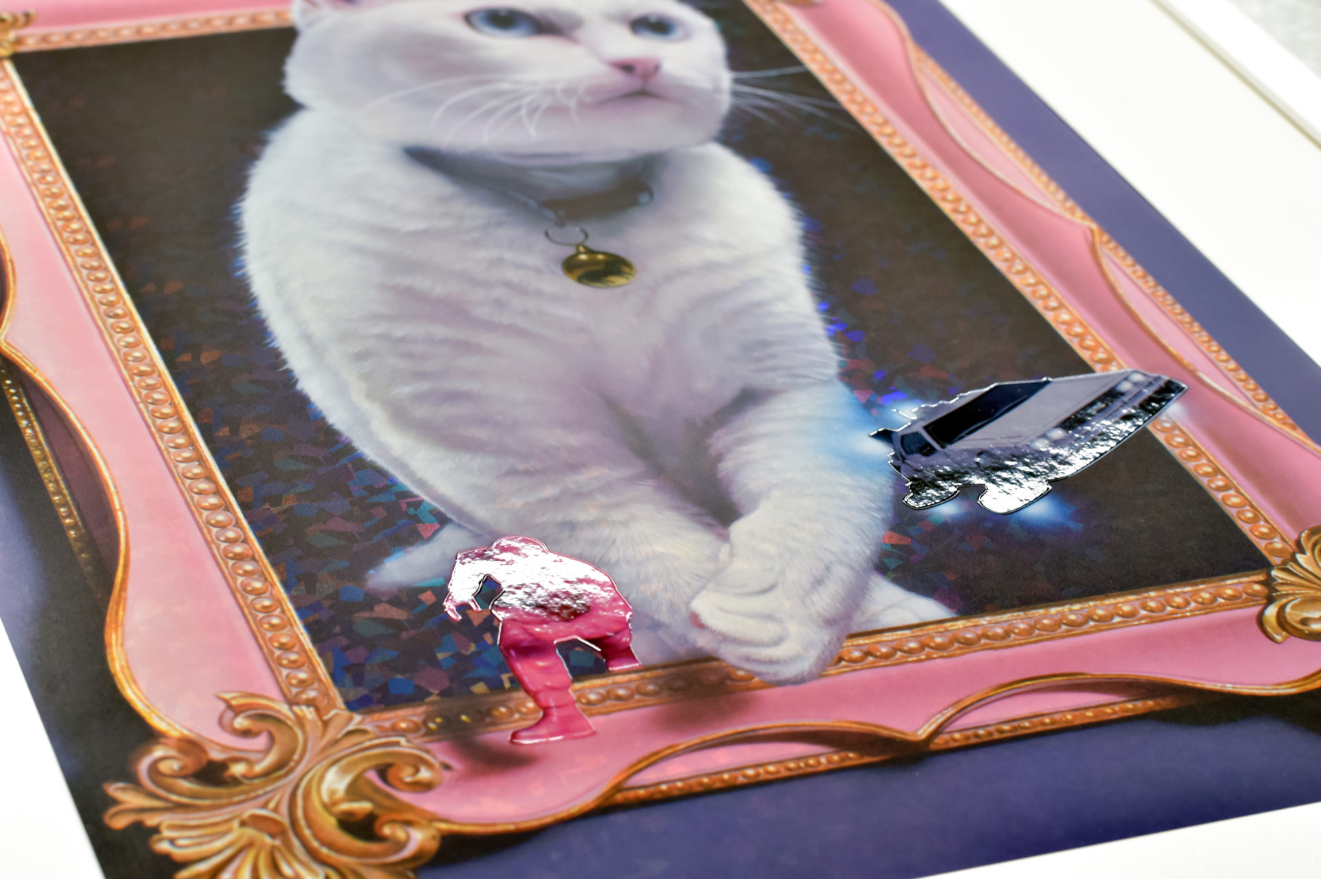 特殊シルクスクリーンにホログラムが施され、光を反射するとキラキラと華やかな画面に、
